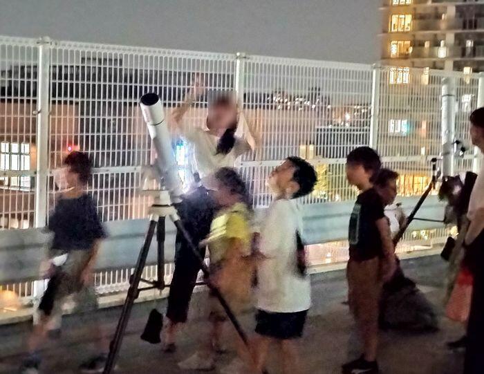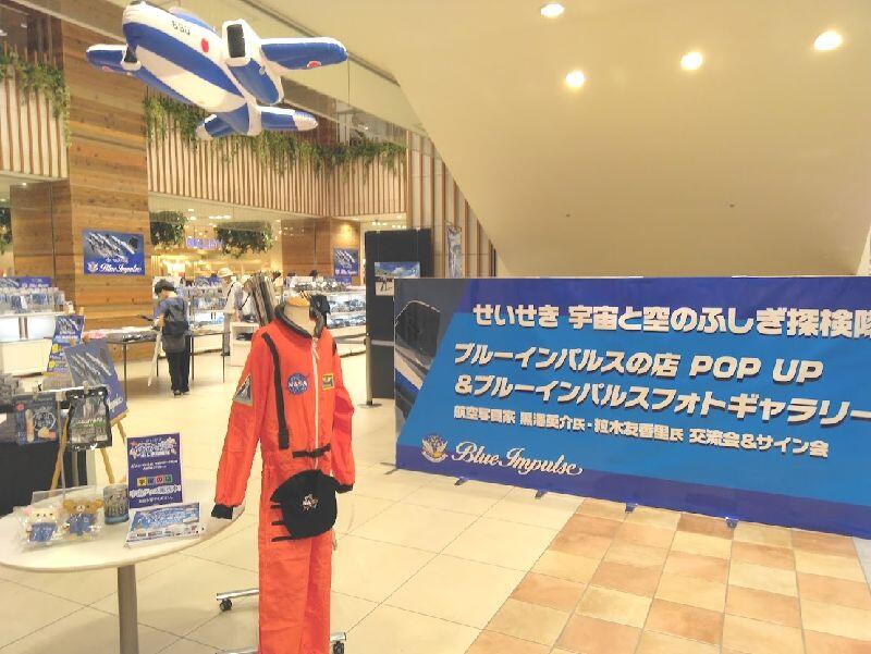 B館 2階 センターコートでは「ブルーインパルスの店」が期間限定出店し、8/9(土)限定で「航空写真家 黒澤 英介氏&粒木 友香里氏 交流会&サイン会」も実施されました。また、7階 おもちゃ売場では「宇宙の店」が期間限定出店し、上記写真中央に見える「オレンジスーツ レプリカ」や、「宇宙おにぎり<鮭>」、トミカ プレミアムの「ルナクルーザー」などNASAやJAXA、宇宙に関するさまざまなグッズを販売しました。 C館 せいせき立体駐車場 屋上では8/5(火)限定で事前ご予約制の「天体観測イベント Star Night ~天の川と夏の星座を巡る旅~」を開催し14組のお客様にご参加いただきました。