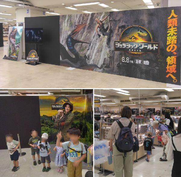 大人気恐竜映画の王道をいく『ジュラシック・ワールド』の新作公開を記念したPOPUP。劇中のシーンを再現した大型フォトスポットなどがいくつも設置され、大人も子どもも、ポーズを決めて写真撮影を楽しんでいました。