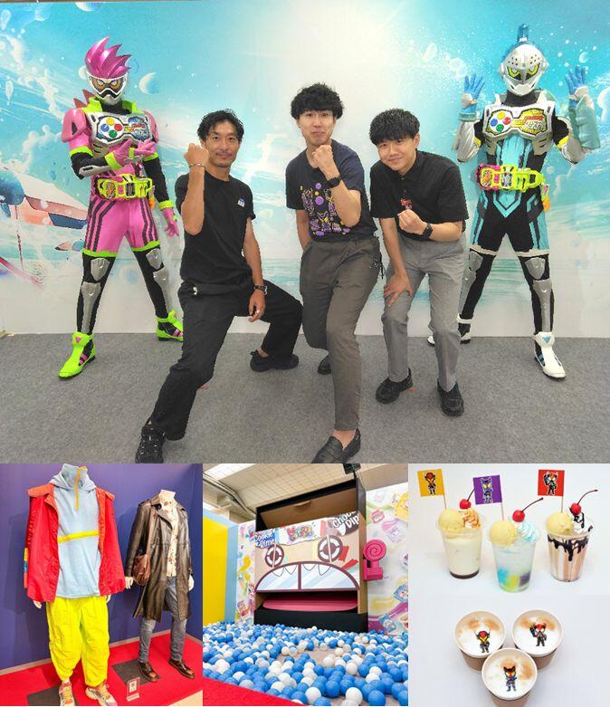 「仮面ライダーガヴ」の撮影で使用された衣裳・小道具の展示やグッズ販売のほか、日替わりで登場する仮面ライダーと写真が撮れる「仮面ライダー写真館(有料)」も設け、ガヴ以外の歴代仮面ライダーたちとのツーショットに歓喜するファンの方々が集いました。ゴチゾウのボールプールはお子様方に大人気。また、6階のアートスクエアではドリンクなどのコラボレーションメニューを展開し、7階大催場から多くのお客様がいらっしゃいました。