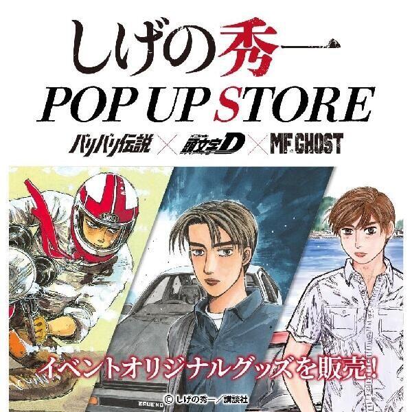 しげの秀一氏を代表する3作品『バリバリ伝説』、『頭文字D』、『MFゴースト』のオリジナルグッズ約70点が集結するPOP UPを初開催。物販ではトレーディングアクリルスタンドやトレーディングコミックアクリルキーホルダーのほか、受注生産で版画も販売されました。会場内にはコミックの書影が一覧になった壁面装飾や、『頭文字D』に登場する「藤原とうふ店」の文字が入った車と一緒に写真が撮れるフォトスポットなどが設置されました。連載当時からのファンの方をはじめ、親子で推し活を楽しまれているという方も多く、若い世代の女性ファンも多く見受けられました。