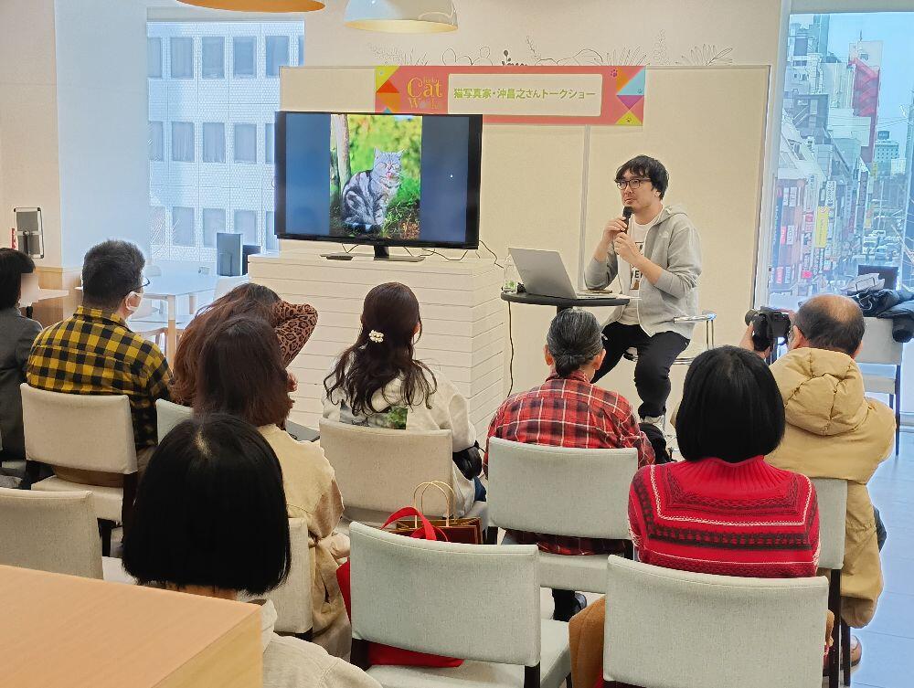 京王百貨店 新宿店でも、「猫の日」にちなんだ猫イベント・猫商品を強化して展開しました。新宿店の階段踊り場や8階レストラン街などに人気の猫写真家・沖昌之さんの作品を展示し、館内を回るスタンプラリーを開催したほか、2月14日(土)には4階 カフェ&コワーキングスペース「ラウンジK」にて沖さんのトークショーを実施しました。