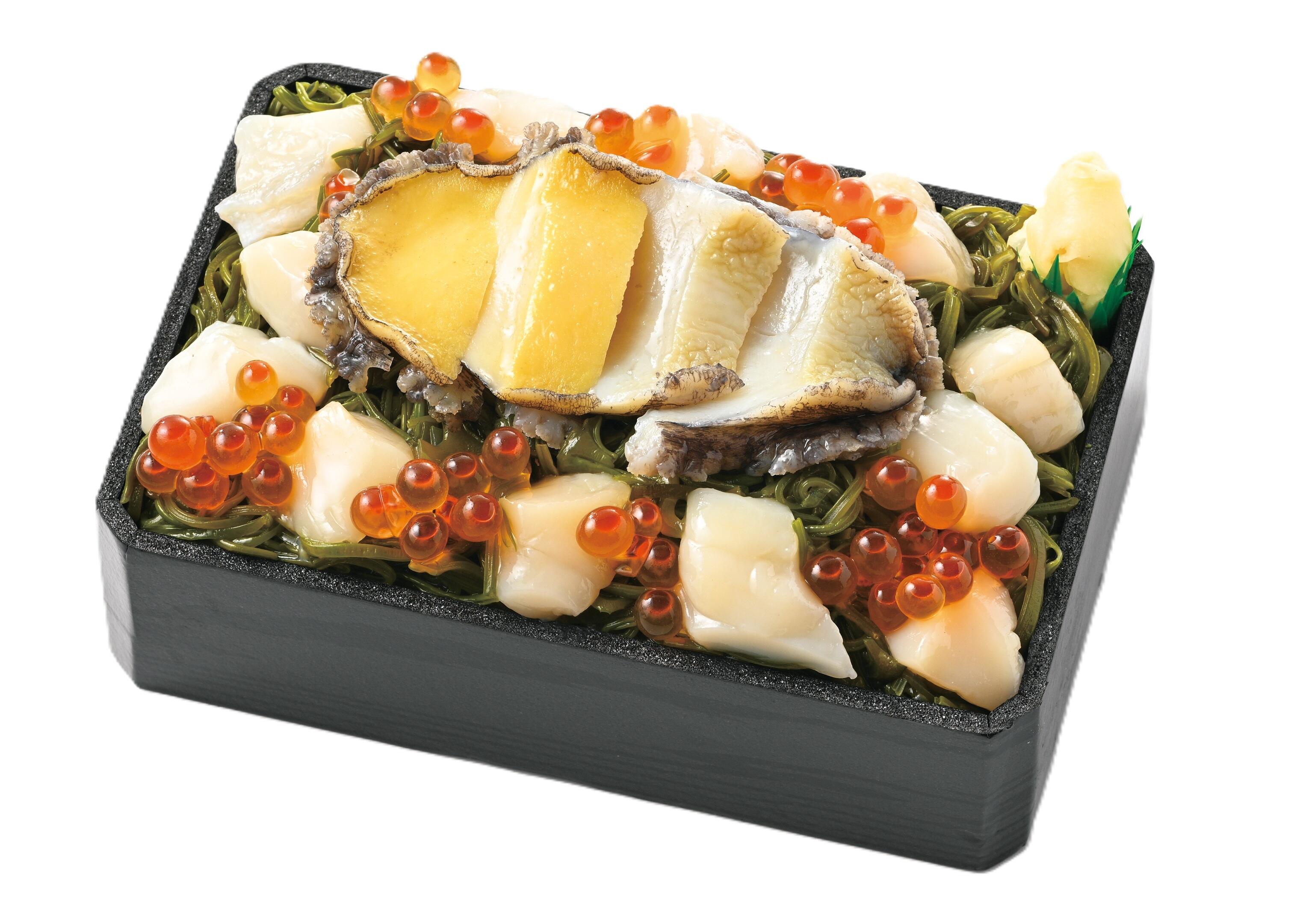 被災の中で残った岩手県大船渡市のブランドアワビ『三陸翡翠あわび』と、そのDNAを受け継ぎ宮城県志津川湾で養殖されたアワビの2種を使用し、それぞれのあわびの食感の違いを楽しめる駅弁を販売しました。