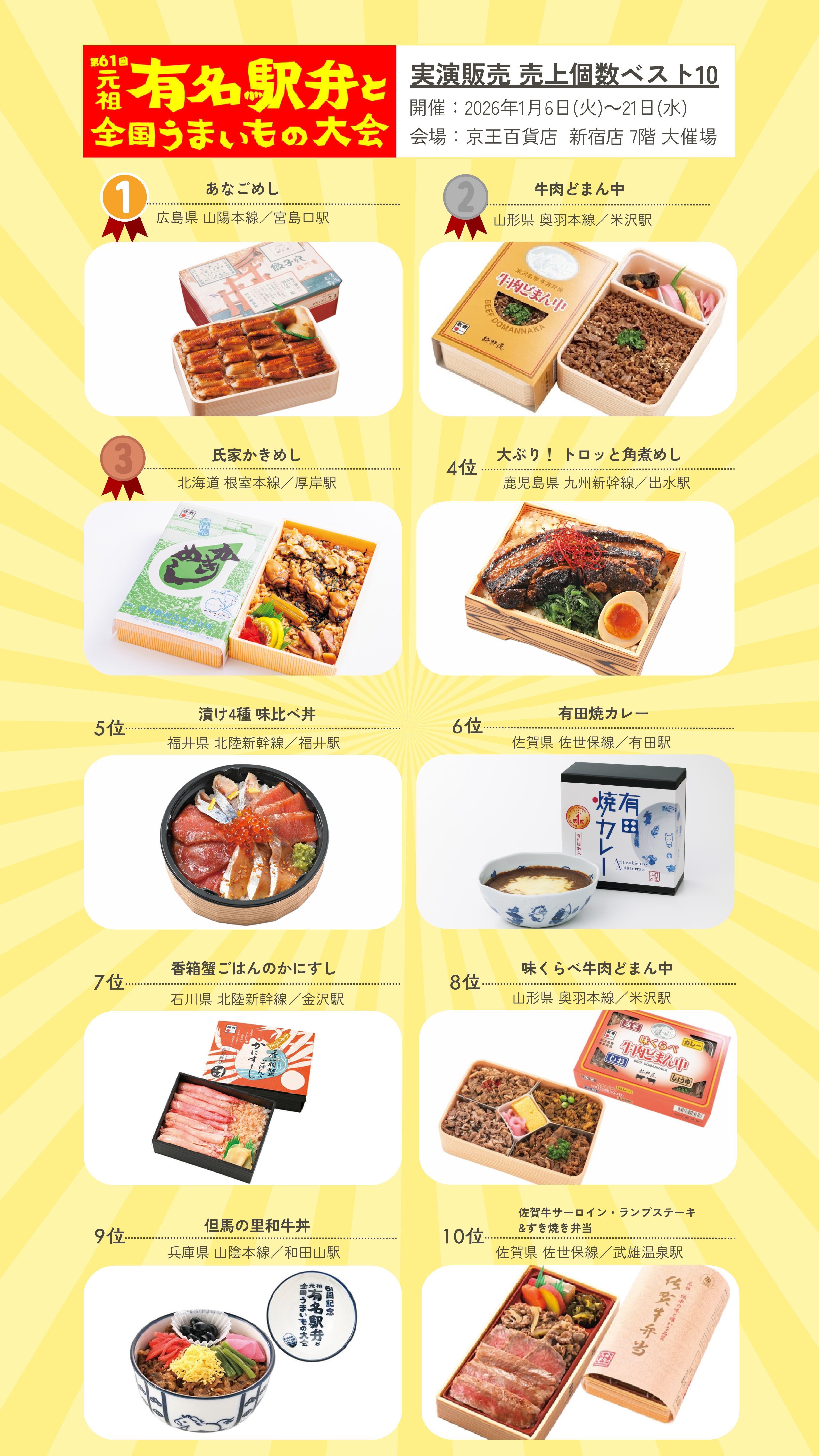 京王百貨店の名物催事となっている「元祖有名駅弁と全国うまいもの大会」(以下、駅弁大会)。2026年1月に実施した第61回大会では、駅弁大会おなじみの人気企画をはじめ、新企画も多数展開し、16日間の開催で 売上予算比+約8%と盛況のうちに幕を閉じました。多くの駅弁大会ファンを魅了した今大会を振り返ります。