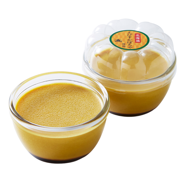 北海道産えびすかぼちゃのペーストに牛乳、卵、北海道産生クリームを加えて、じっくりと焼き上げました。シナモンの風味が効いた、濃厚なかぼちゃの味わいが特長のプリンです。