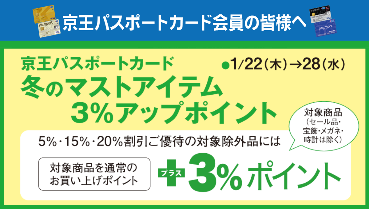 【聖蹟桜ヶ丘店 LINE友だち限定】京王パスポートカード 冬のマストアイテム 3%アップポイントご優待のお知らせ