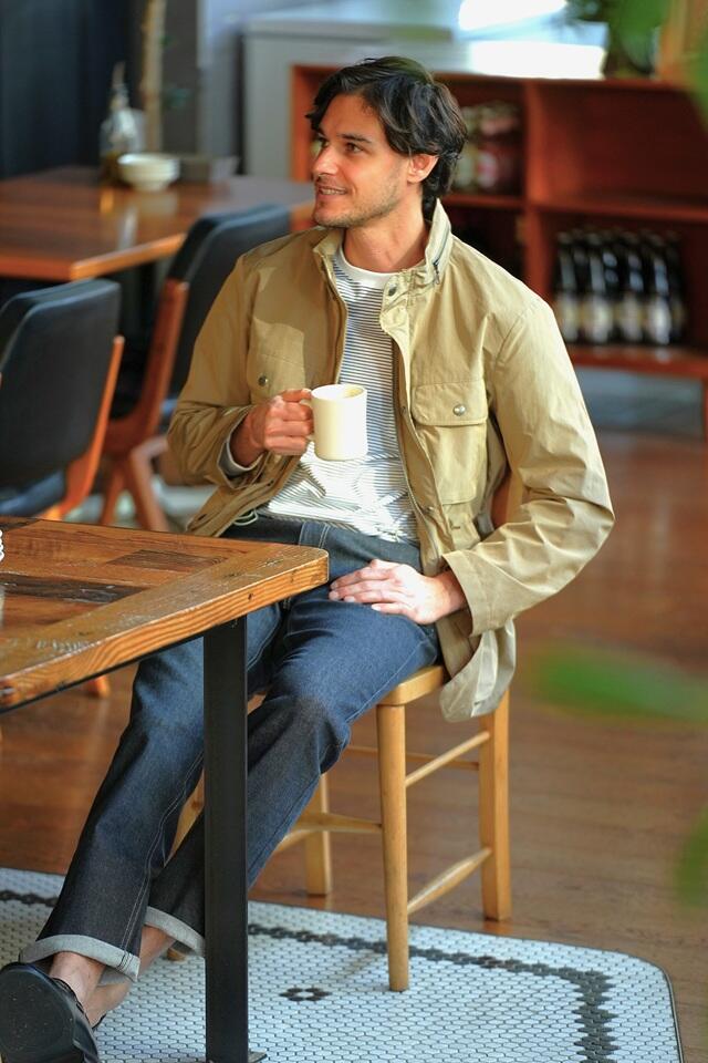 表情のある素材感とミリタリーテイストが融合した軽快なフィールドジャケット。収納ポケットも多く、旅先でも気取らないお洒落着として活躍します。デニムは伸縮性に優れた素材を採用、すっきりとしたデザインでジャケットスタイルからカジュアルスタイルまで幅広く着回しができます。