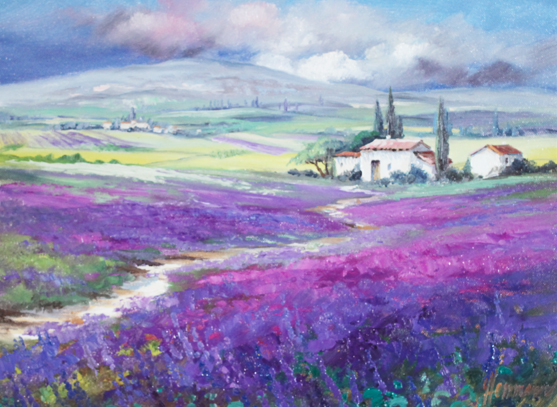 ウット・エルマン「ラヴェンダー畑のヴィラ」(油彩、30×40cm)