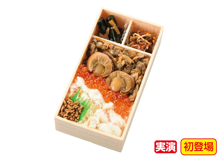 - 日本最北端の駅・稚内駅にて食堂と立ち食いそばを営む「ふじ田食堂」が初出店!北海道産のホタテの煮付けのほか、イクラの醤油漬け、アサリ煮、カニのほぐし身、北海道産山わさびの漬物をたっぷりと盛り付けた新作駅弁です。