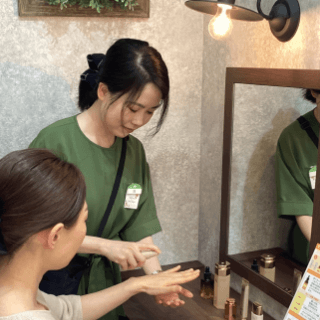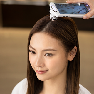 お客様のスカルプチェック&おすすめ製品のタッチアップをさせていただきます。