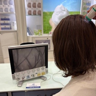 店頭にてマイクロスコープを使用し、お客様の頭皮をチェックいたします。