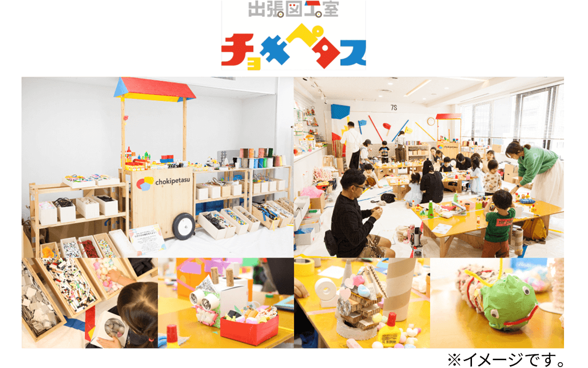 「chokipetasu(チョキペタス)」は、カタチにすることを目指さない図工室です。創業240年の紙屋・中庄が取り揃えた豊富な種類の紙、企業の珍しい形の端材・廃材を、カラフルで楽しい道具を使って、図工・創作を楽しむことができます。この図工室では、名前の通り、手を動かしながら素材を切ったり(チョキ)、貼ったり(ペタ)、そこから始まる無限の可能性をプラス(タス)することで、ウェブやSNSで調べれば簡単に見つかるような形とは違う、自由でワクワクする「自分だけのカタチ」が見つかります。