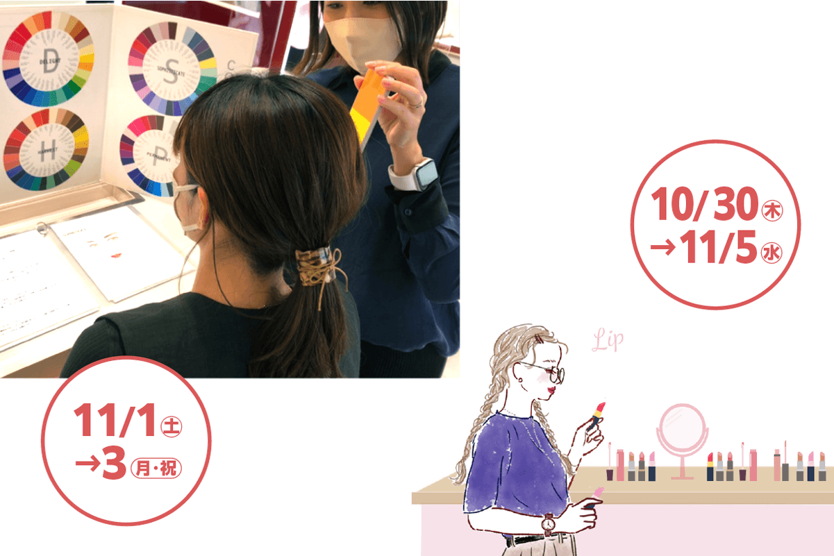 京王百貨店社員の有資格者がカラー診断を行います。さらに、結果に応じたお似合いのメイクをメイクアップアーティストがご提案。お客様の魅力をさらに引き立てる、運命のリップを一緒に探しましょう。