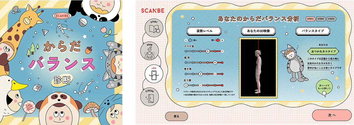 立ったままの測定データを寝姿勢に変換する「3Dボディフィッティングシステム」を使って、手軽に体験できる測定会。測定結果から一人一人に合った「MuAtsuマットレス」をご提案します。寝試しも体験できます。