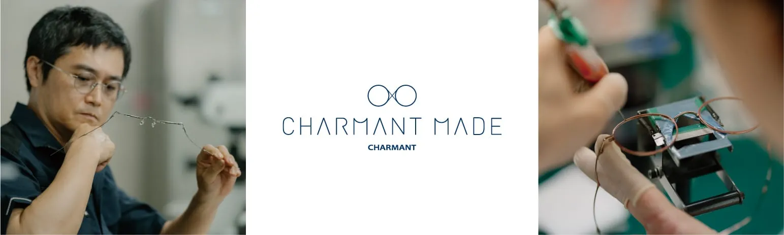 With those who need glasses in mind, these eyeglass frames were created using the techniques honed in Sabae, Fukui Prefecture. Serious in every detail, yet when you put them on, your heart feels lighter. We deliver only glasses we can proudly say, “This is CHARMANT MADE.”