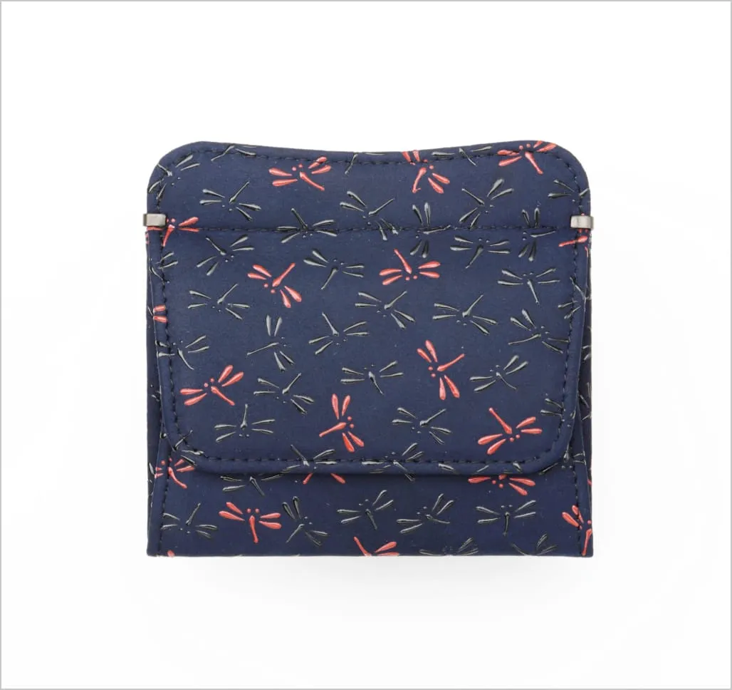 Inden-ya, a traditional manufacturer specializing in Koshu Inden - a deer skin craft with lacquer patterns. This Nagomi series features the iconic dragonfly pattern of Inden drawn with two colors: black and red lacquer.