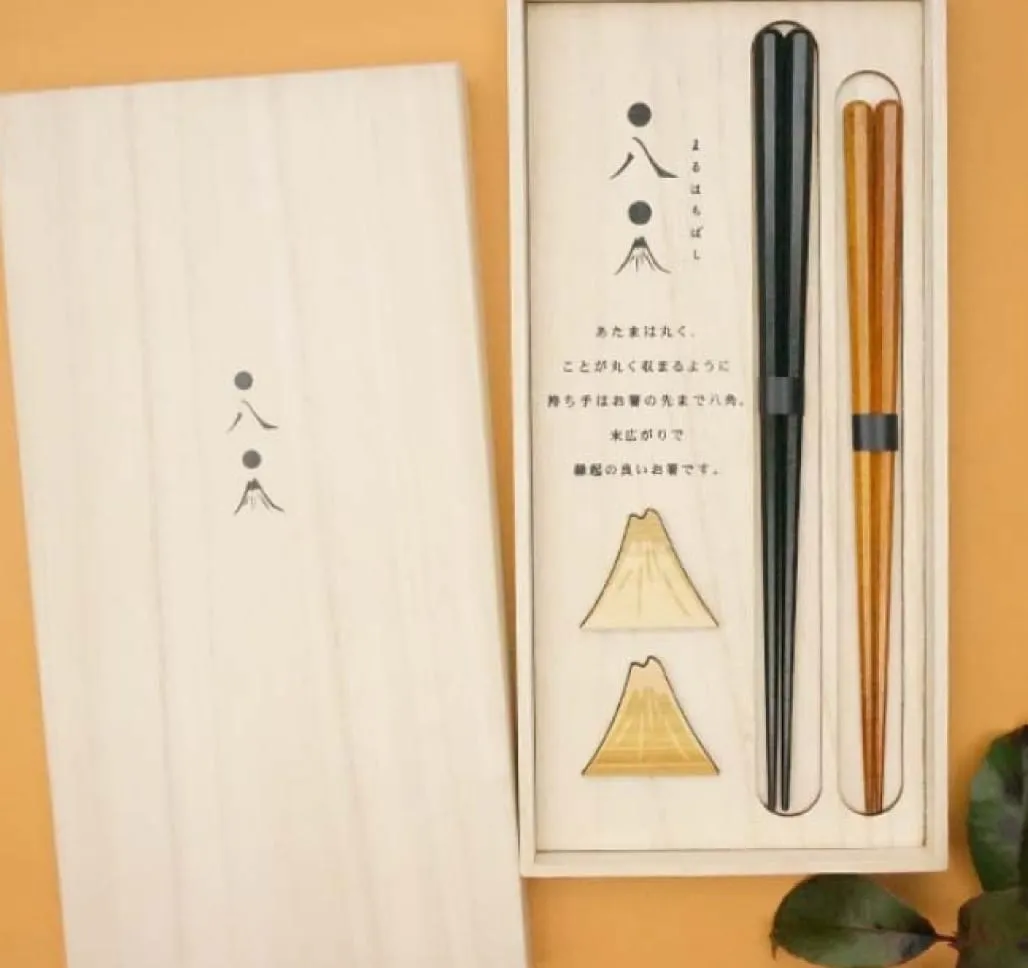 Founded in Obama, Fukui Prefecture, the birthplace of Wakasa lacquerware. Featuring an auspicious octagonal shape from the upper handle to the tip, symbolizing prosperity. A lucky gift set paired with Mt. Fuji chopstick rests.
