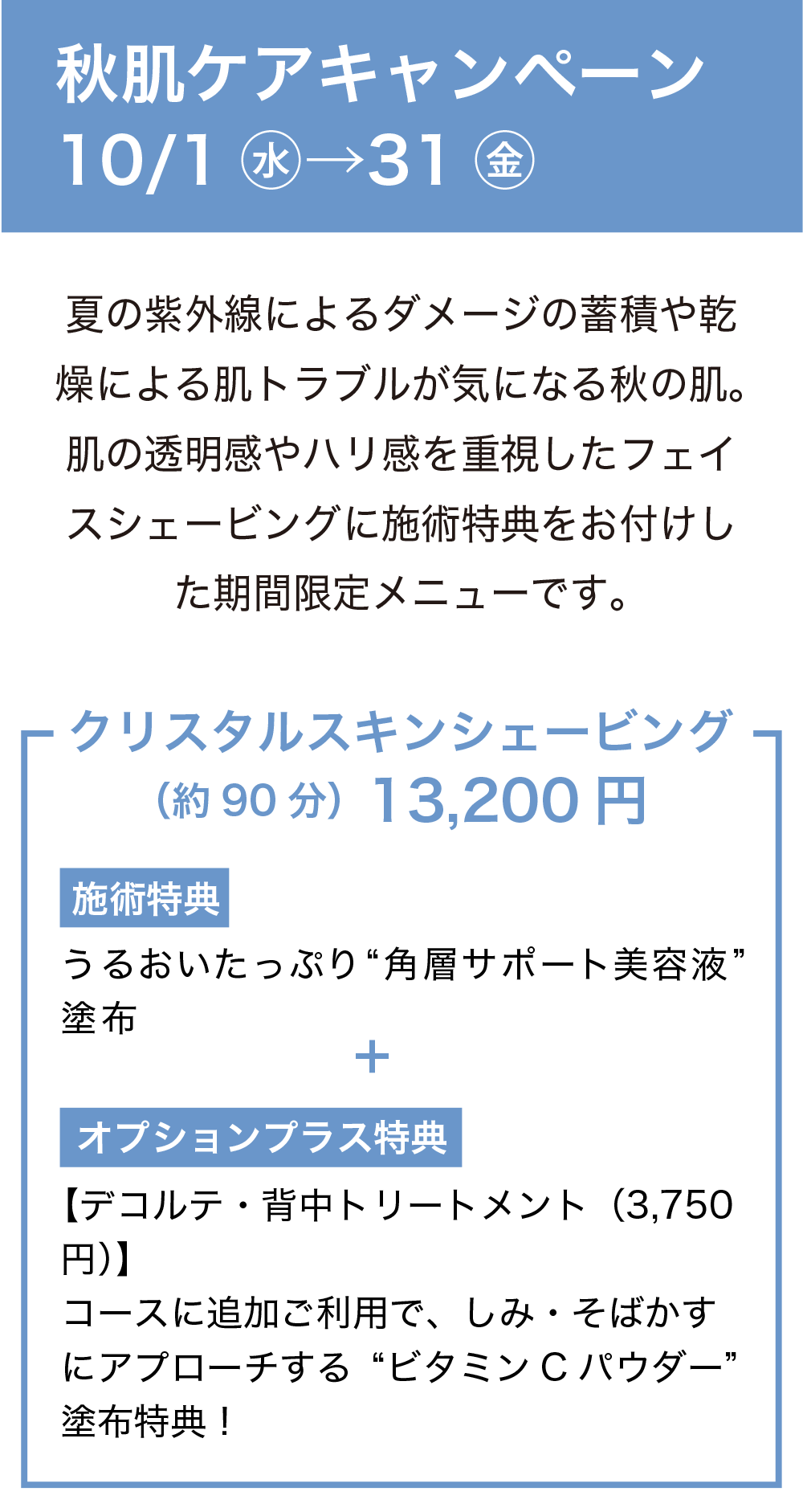 シェービングは、古くなった角質をキレイに取り除くことで、肌のターンオーバーに働きかける『スキンケア』!シェービング後はファンデーションのノリも変わりより秋メイクをお楽しみいただけます。ぜひ一度お試しください。