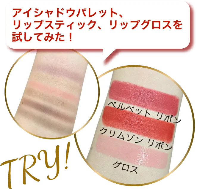肌なじみのよいアイシャドウとリップで揃えられているので肌色を問わず使いやすい♪