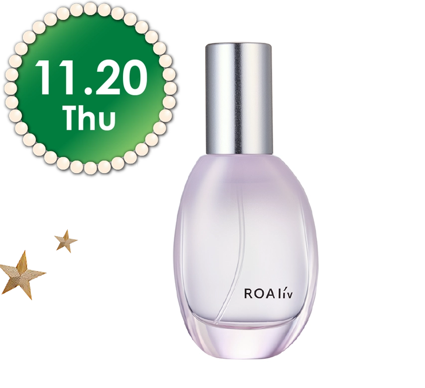 みずみずしいカシスやグレープフルーツから、華やかなマグノリアやジャスミンへ、最後にサンダルウッドやムスクが可憐な余韻を残します。