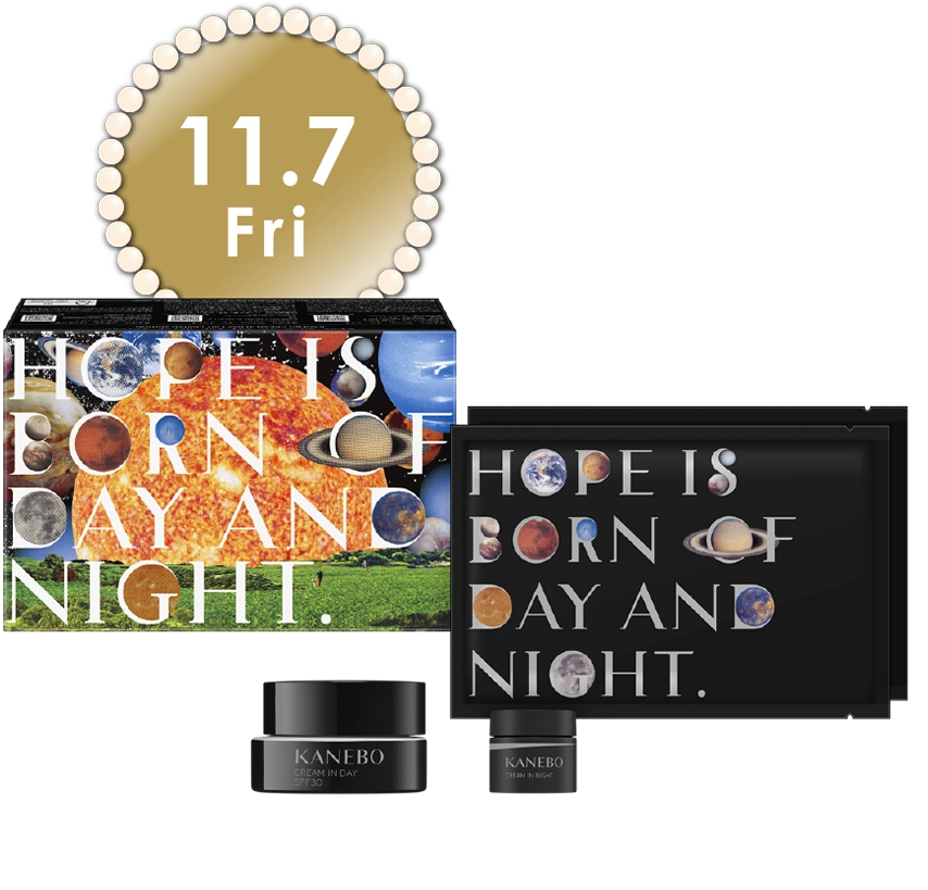 メイクのりを高める朝クリームの現品と肌を引き上げるシートマスク、夜クリームのミニを、ご自分に、そして大切な人に贈る、この冬だけの限定デザインパッケージにイン。
