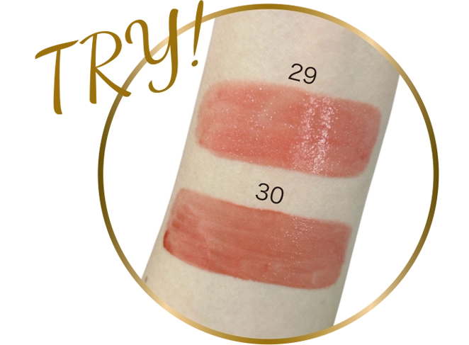 29番はキラキラ輝くラメ入りでうるおいあふれる魅力的な唇を演出!30番は肌なじみがよくオンオフ問わず使いやすいカラー。たっぷり付けて単体使いや、薄く付けていつものリップの雰囲気を変えるグロスとしても使える万能リップオイルです♪