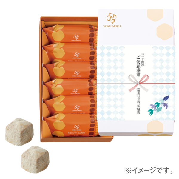 11/1(土)当日、レシート合計税込10,000円以上お買い上げの先着500名様に「新宿店開店61周年記念 京王百貨店オリジナル紙帯付き ヨックモック ビスキュイ キャレ ナチュール」をプレゼント!