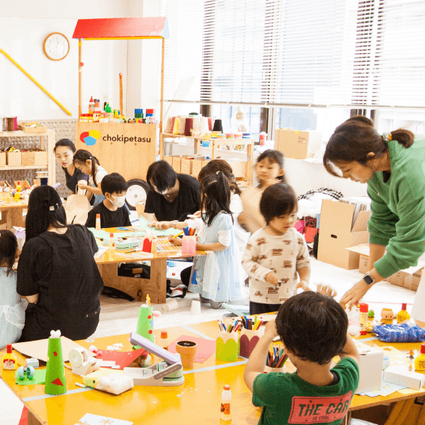 創業240年の紙屋・中庄が取り揃えた豊富な種類の紙、企業から提供されたの珍しい形の端材・廃材を、カラフルで楽しい道具を使って、図工・創作を楽しむことができます。自由でワクワクする「自分だけのカタチ」が見つけよう!