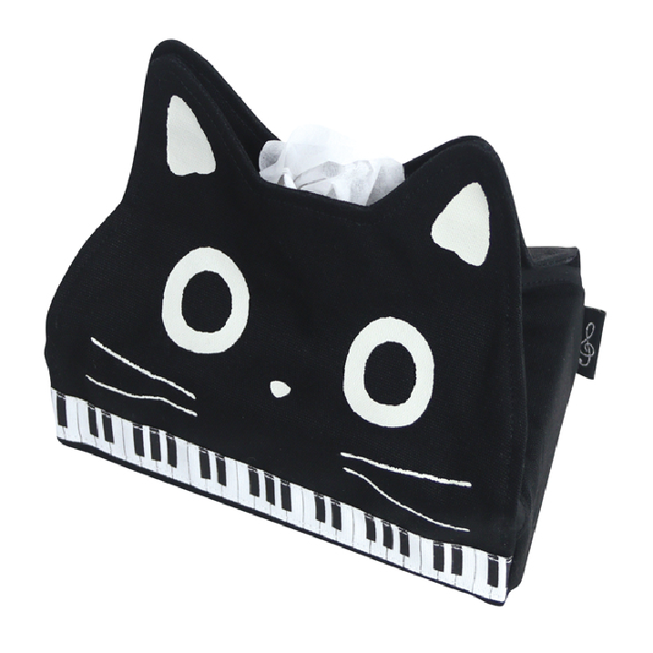 大きなたまちゃんフェイスがキュートな置き型ティッシュカバー。鍵盤柄のテープをあしらいました