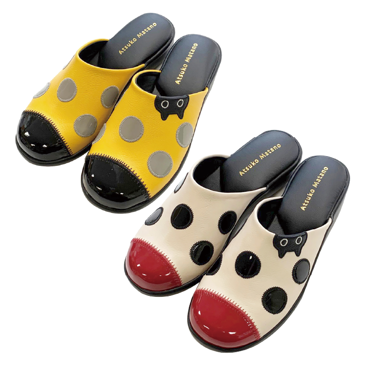 てんとう虫をイメージしたドットがかわいらしい外履き用サンダル。MEMEのアップリケもキュート!