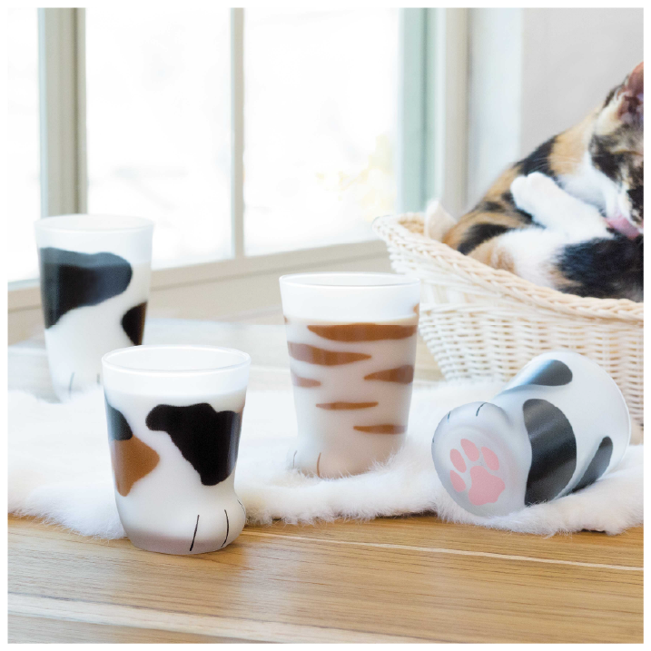 まあるい猫の足先に癒されること間違いなしのグラスです。中に牛乳を入れると、より柄が目立ちます。底面に肉球が描かれているのもポイント!