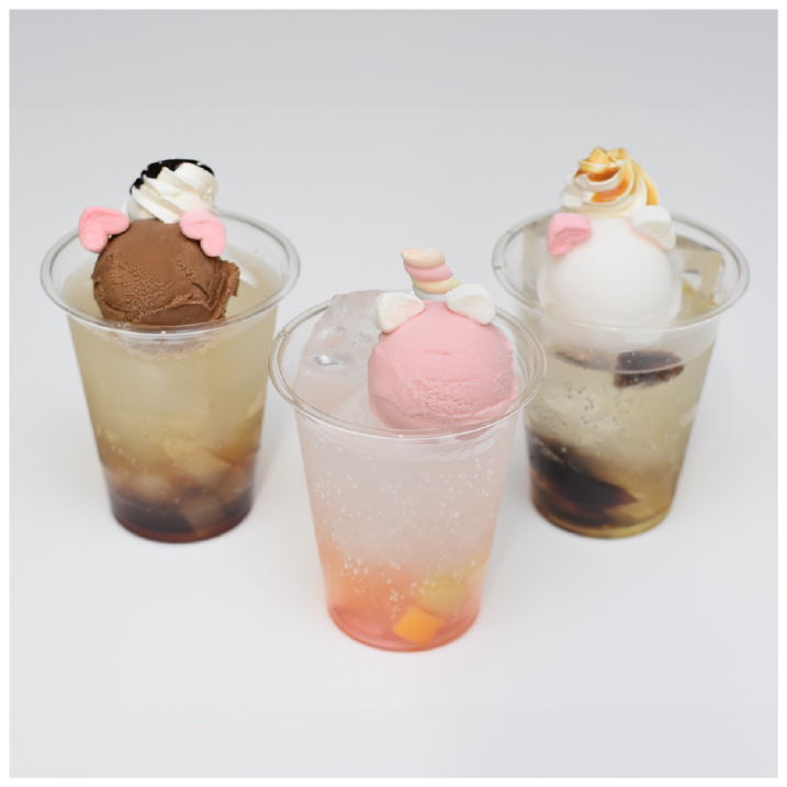 仲良し猫ちゃん3匹をチョコ、さくら味、コーヒーゼリー味でイメージしました。
