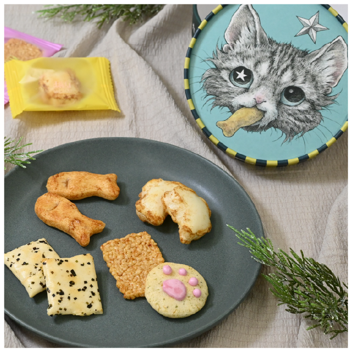 キュートなこねこのパッケージは、画家でイラストレーターのにしざかひろみさんによる描き下ろし。肉球が描かれた小丸煎餅は、食べるのがもったいない可愛さです。