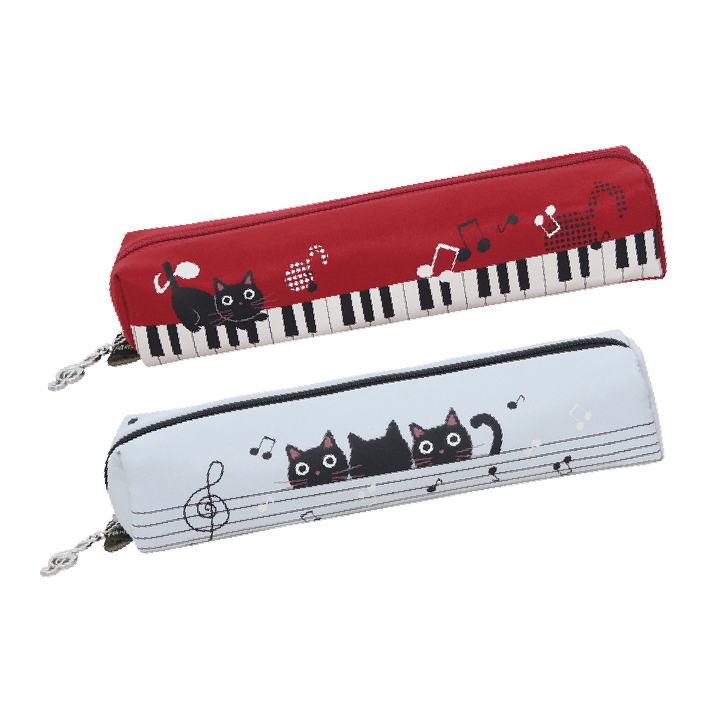 コロンとした横長のペンケース。かわいいドレミたま柄に、ト音記号のチャームがアクセント。