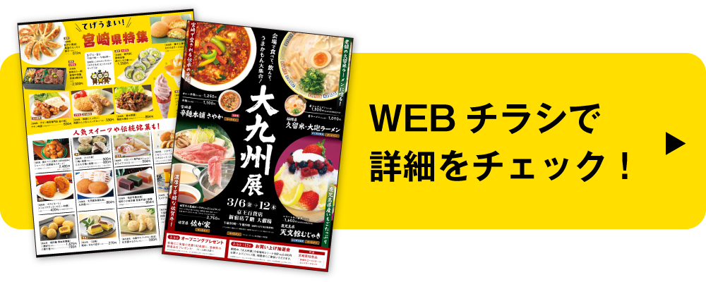 ■「大九州展」でのお買い上げは、京王パスポートカードのポイント・お買い上げ額の対象外です。