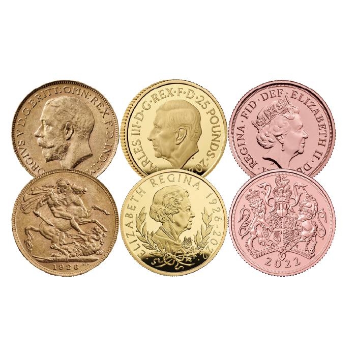 エリザベス女王生誕99周年金貨3枚セット (左から22K・24K・22K/左から直径2.205cm ・7.98g/直径2.2cm・7.8g/2.205cm・7.98g)