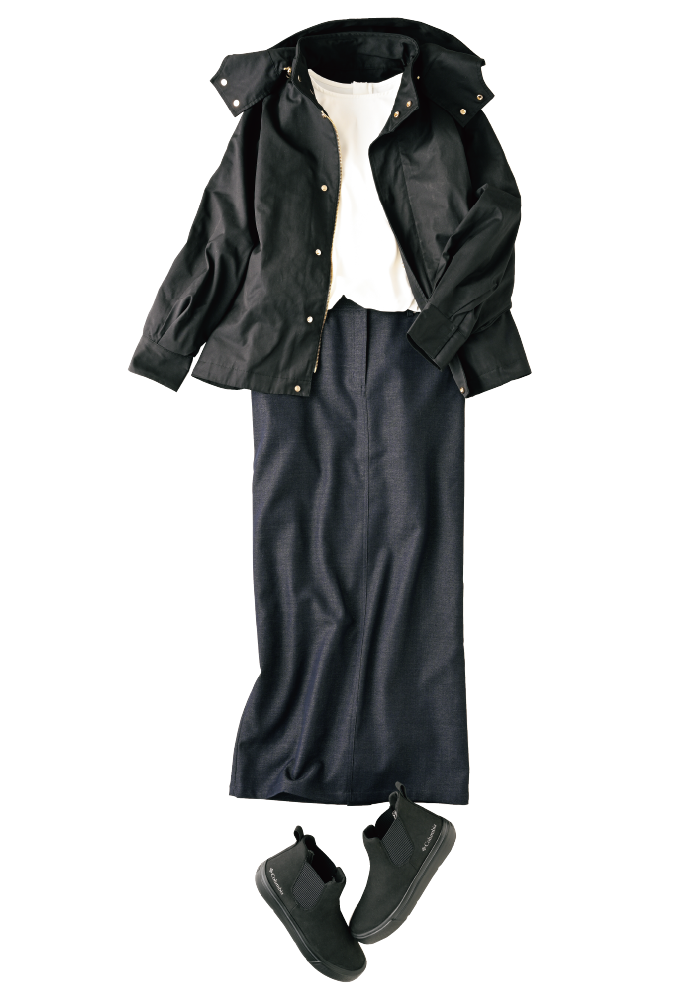 しなやかなデニムライクな素材で、キレイ見えするペンシルシルエット。
