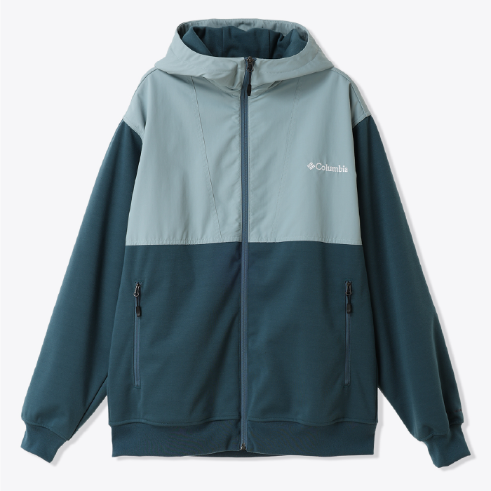 スポーティーな切り替えデザインで定番人気のフルジップフーディー。防風性と透湿性を両立した「オムニウィンドブロック」、日差しから肌を守る「オムニシェイド」を備え、キャンプやハイキングなどのライトなアウトドアシーンにも最適です。