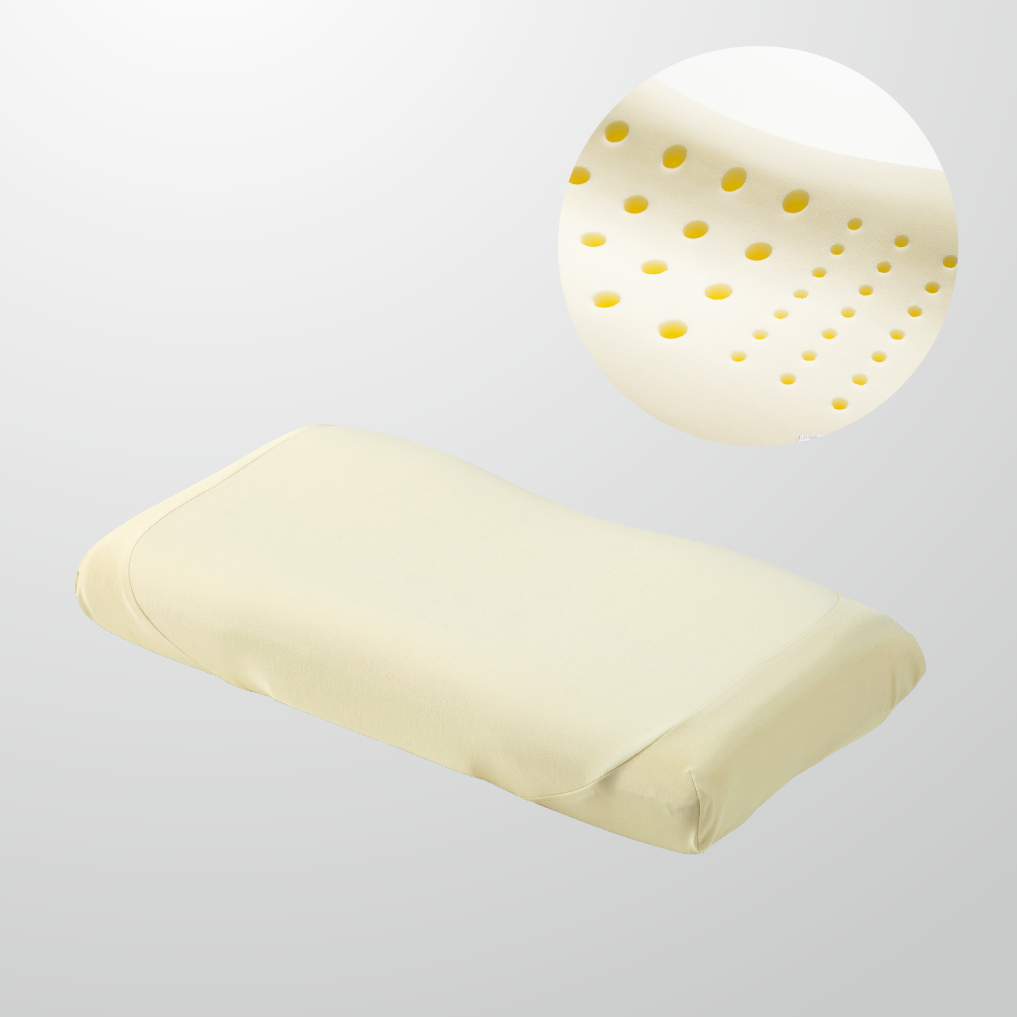 天使のほっぺのような柔らかくて優しい感触の枕です。内部はやや硬めで必要な高さをキープします。リラクゼーションフォーム採用で温度による硬さの変化をほとんどおこさず、快適におやすみいただけます。