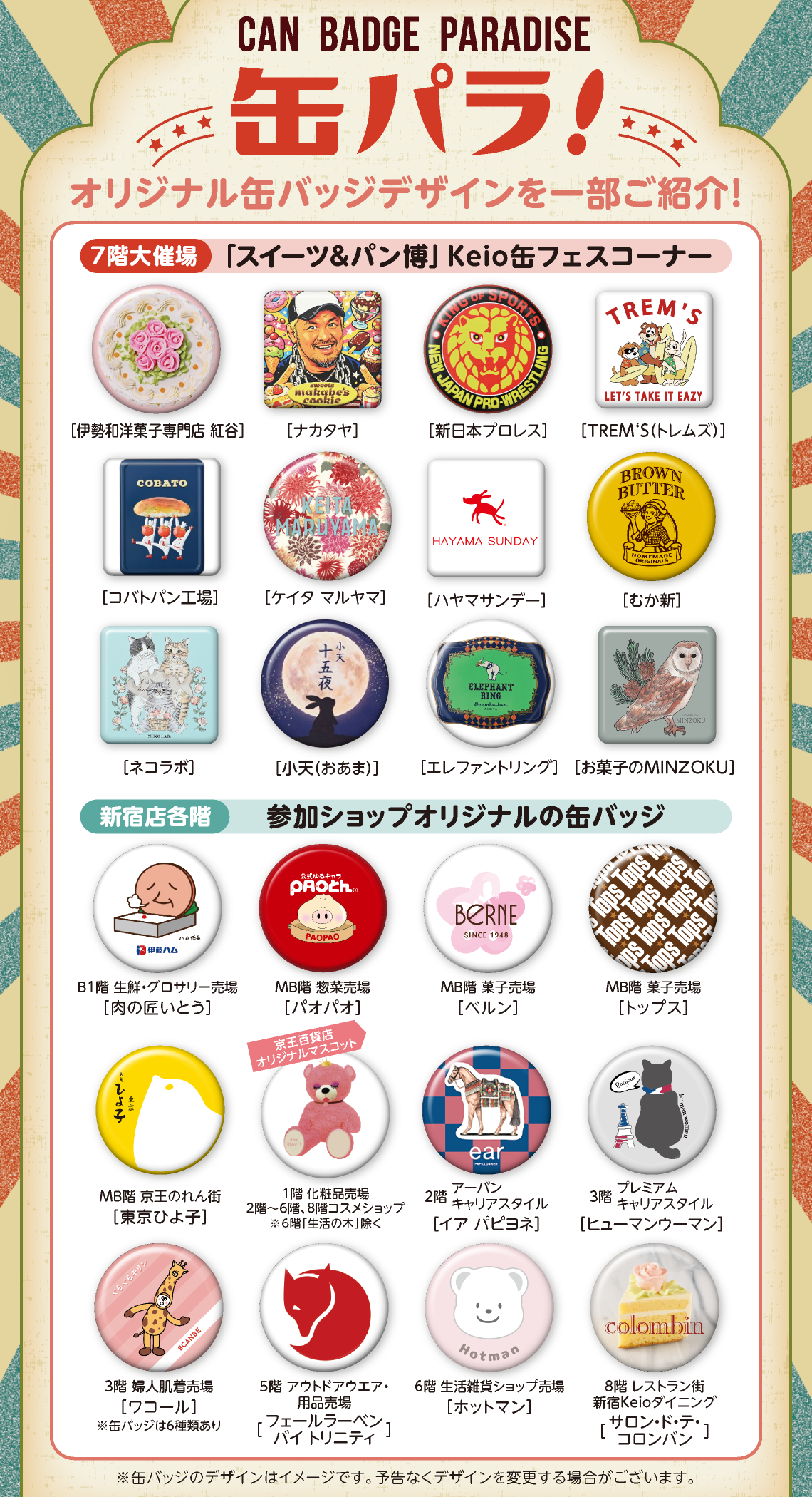 ※配布する缶バッジの数量はショップ・ブランドごとに異なります。