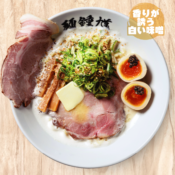 北海道産の鶏と豚を使用した味噌白湯スープを乳化させた白い味噌ラーメンに、トリュフ卵とバターをのせて香り豊かに。