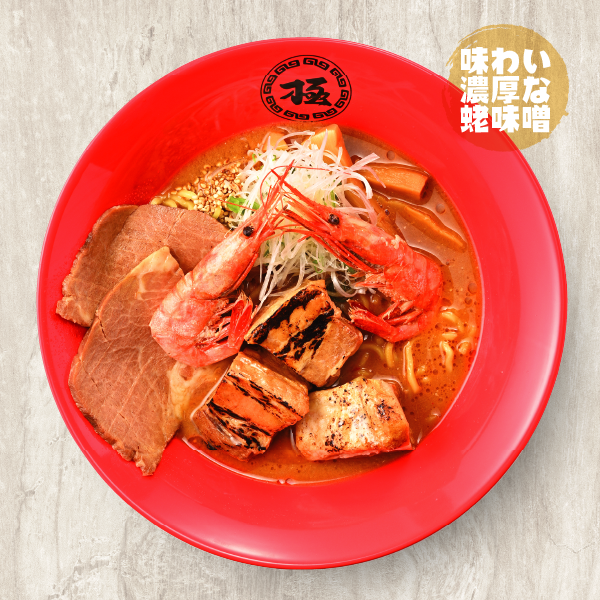 濃厚味噌ラーメンにチャーシューと甘えびを贅沢にのせて、ボリューム&満足感たっぷり!