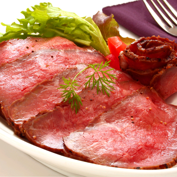 やわらかな黒毛和牛の赤身肉を使用した、しっとりとしたローストビーフです。