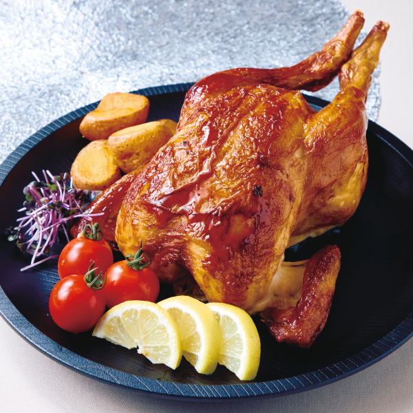 国産の丸鶏を醤油ベースの調味液にじっくり一晩漬けこみ、焼き上げました。パーティーのメイン料理におすすめです。