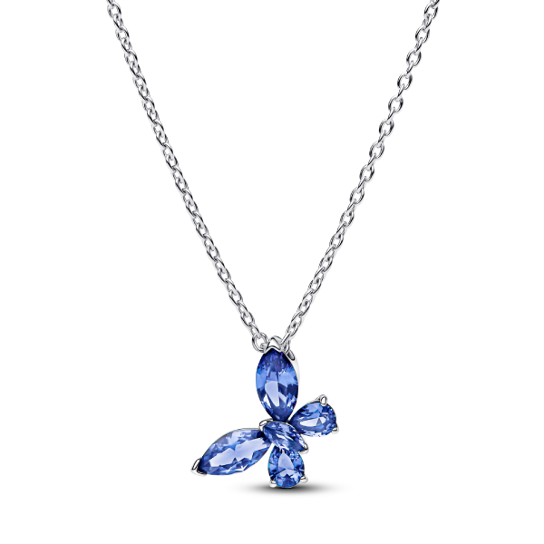 美しいブルークリスタルガラスをバタフライの形にあしらったきらめくペンダントで、自然にインスパイアされた輝きを楽しんで。