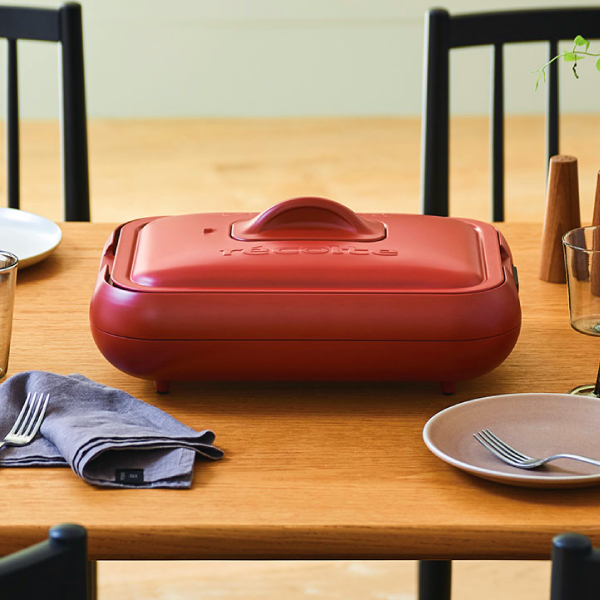 ヒーター一体型のプレートでガス火に負けない「超火力」を目指しました。使い勝手の良さやお手入れの利便性にも優れたホットプレートは、食卓に映えるクリスマスカラーをチョイス!