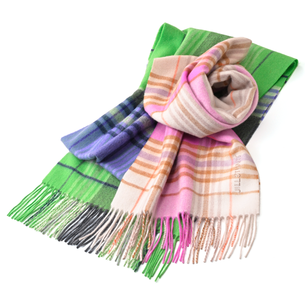 カシミヤならではの肌触りの良いマフラーです。細かなチェックと明るめのカラーリングが、コーディネートのアクセントに。
