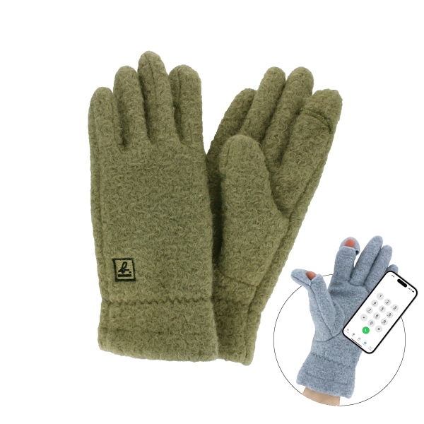 ブランドアイコンのワンポイント刺しゅうがアクセント。しっかりとした厚みで温かさ抜群です。人差し指と親指の指先を出せるので、着けたままスマホ操作もOK!