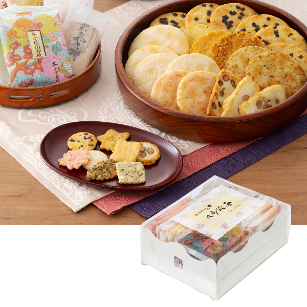 小倉山荘の定番米菓を余すことなく味わっていただける数量限定の詰合せ。