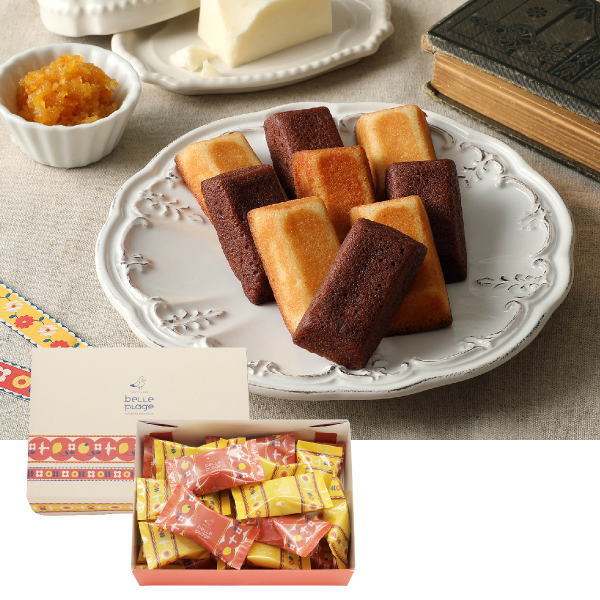 バターが香るプレーンと、ココアにオレンジの香りがとけ合うショコラオランジュ。可愛らしい一口サイズのフィナンシェです。
