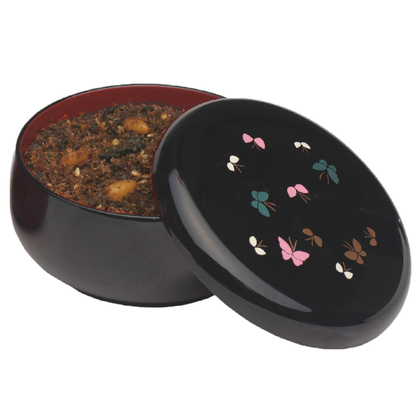 こだわりの佃煮ふりかけを、艶やかに「蝶」が舞う会津塗の器に。
